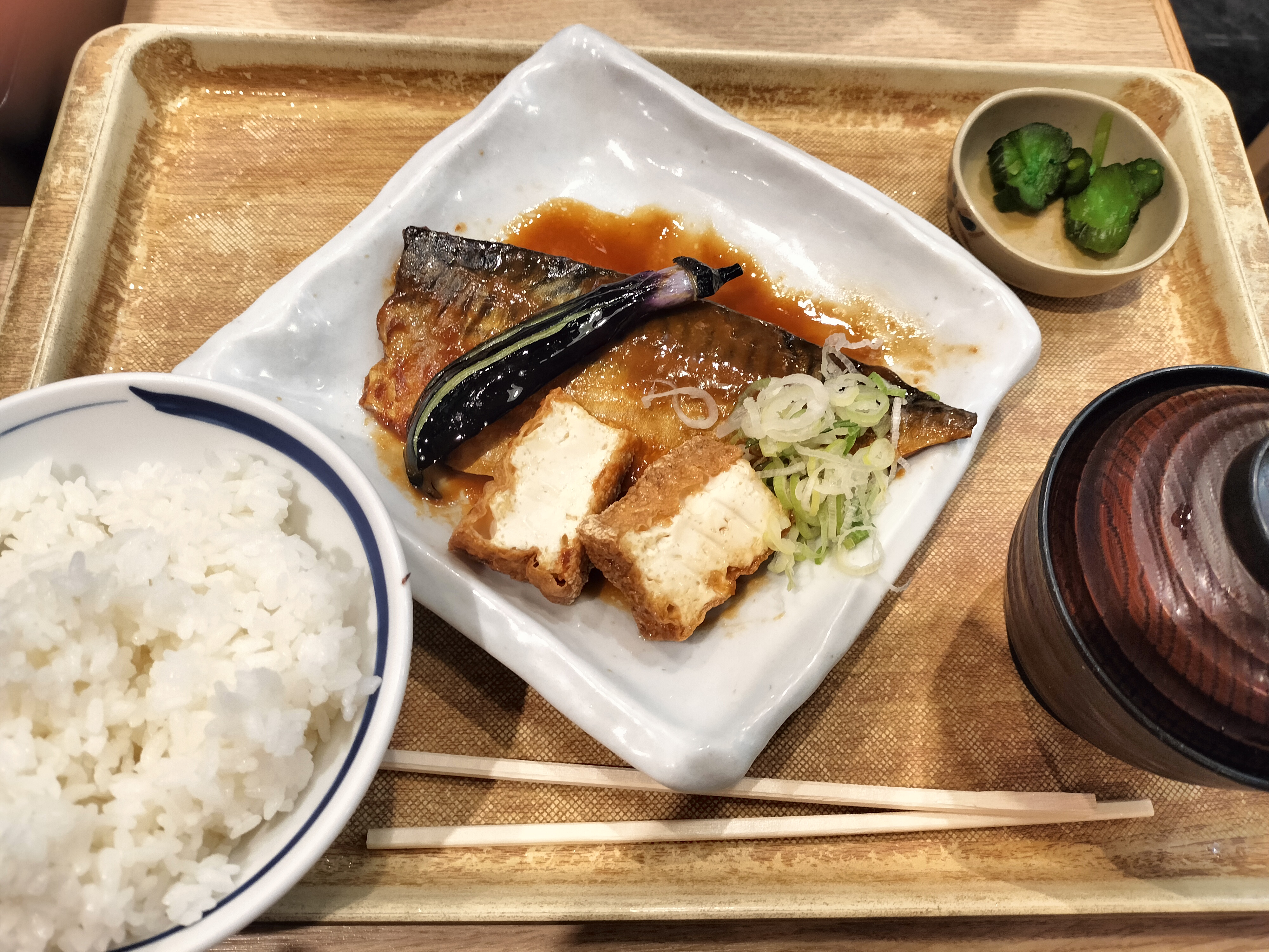 写真は見たあとにみなとみらいで食べた夕ご飯。適当なさばの味噌煮定食。畳む